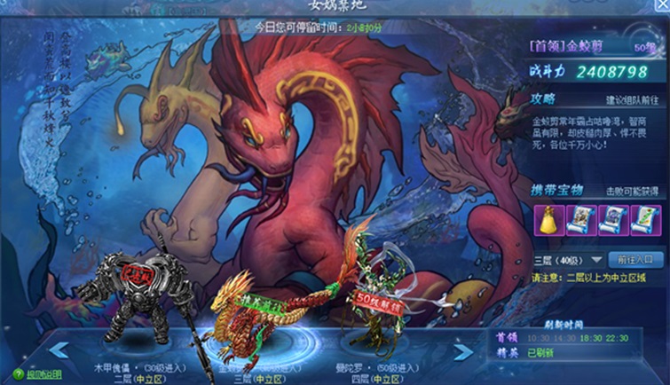 破法境每週二、四、六、日開啟,每日可挑戰五次,副本分難度,每個等級階段都會開啟一個新難度的關卡給予挑戰。並且虛無境的怪物屬於法術免疫,建議大家挑戰使用物系古劍。