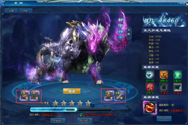 坐騎技能隨著坐騎的升階而被啟動和升級,玩家可通過消耗道具提升坐騎等級,等級越高,除了獲得更高的基礎屬性加成之外,對目標造成的技能傷害越大;